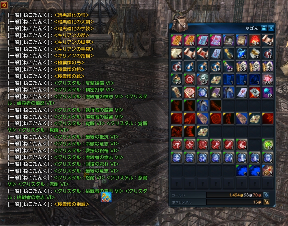 以下が1回でドロップしたアイテムですが、出すぎですw